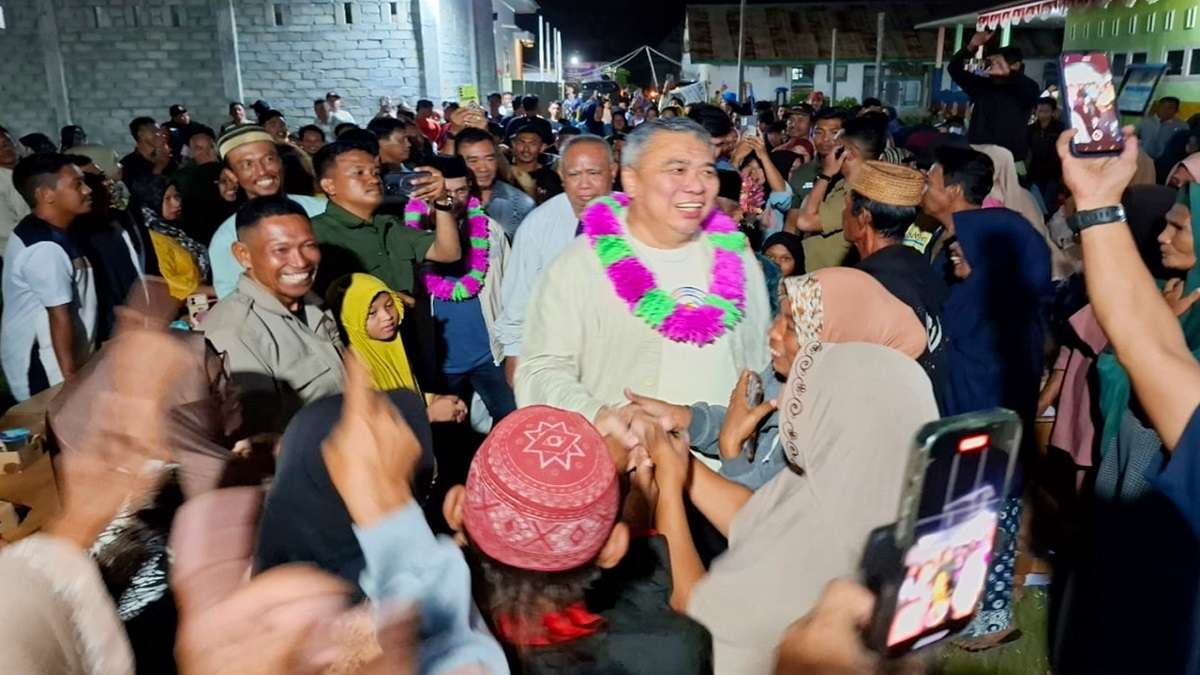 Ahmad Ali disambut warga saat kampanye dialogis di Desa Sidoan, Kecamatan Sidoan, Parigi Moutong, Senin (7/10/2024) malam. (Foto: AMC)