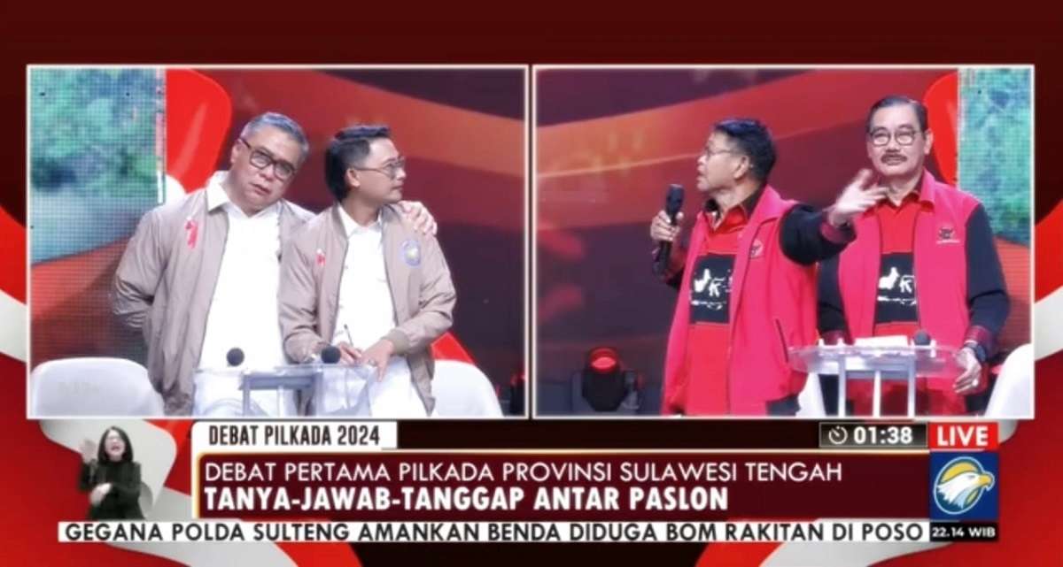Debat perdana kandidat calon gubernur Sulteng yang berlangsung di MetroTV, Rabu (16/10/2024) malam. (Foto tangkapan layar)