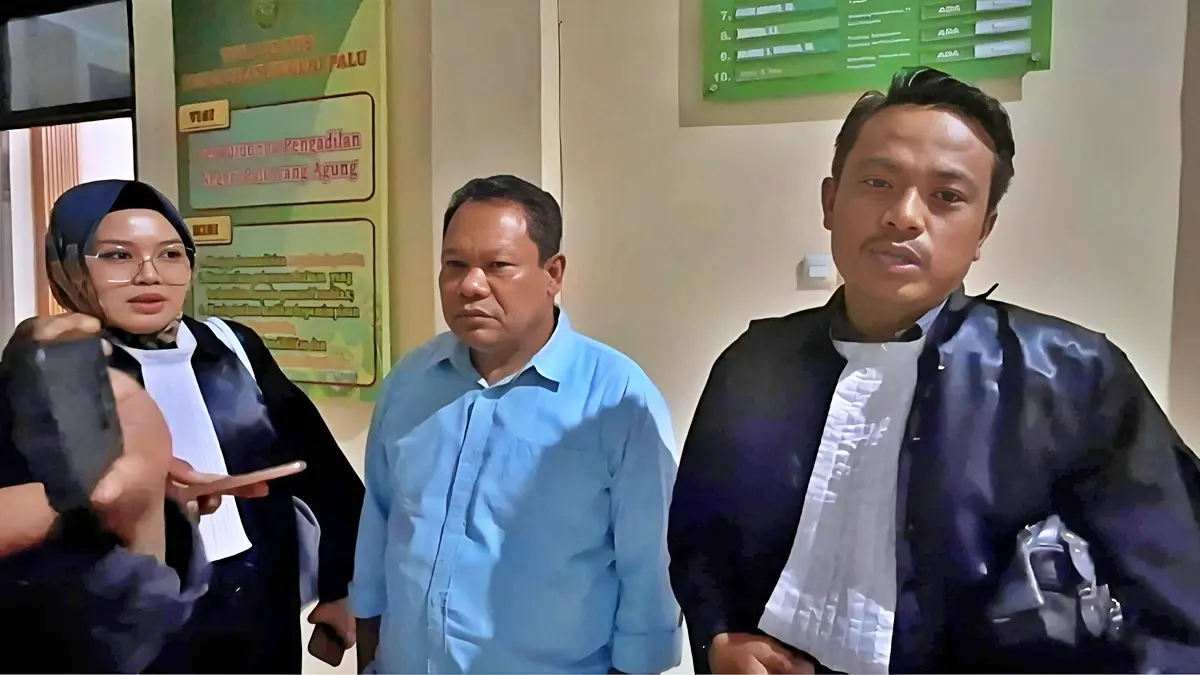Muhammad Asrar Abdul Samad didampingi penasehat hukum usai putusan di Pengadilan Negeri Kelas I Palu, Kamis (28/8/202). (Foto: IST)