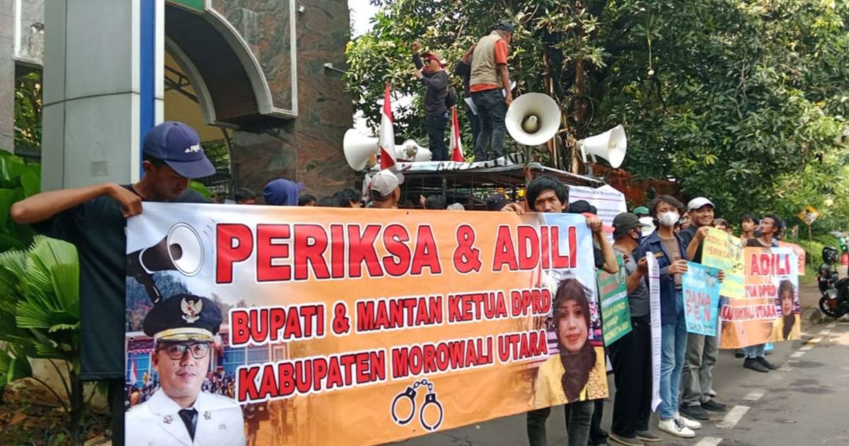 JAKARTA – Bupati Morowali Utara (Morut), Delis Julkarson Hehi, dan mantan Ketua DPRD Morut, Megawati Ambo Assa, didemo di Mabes Polri dan Kejaksaan Agung di Jakarta, Senin (16/6/2025).