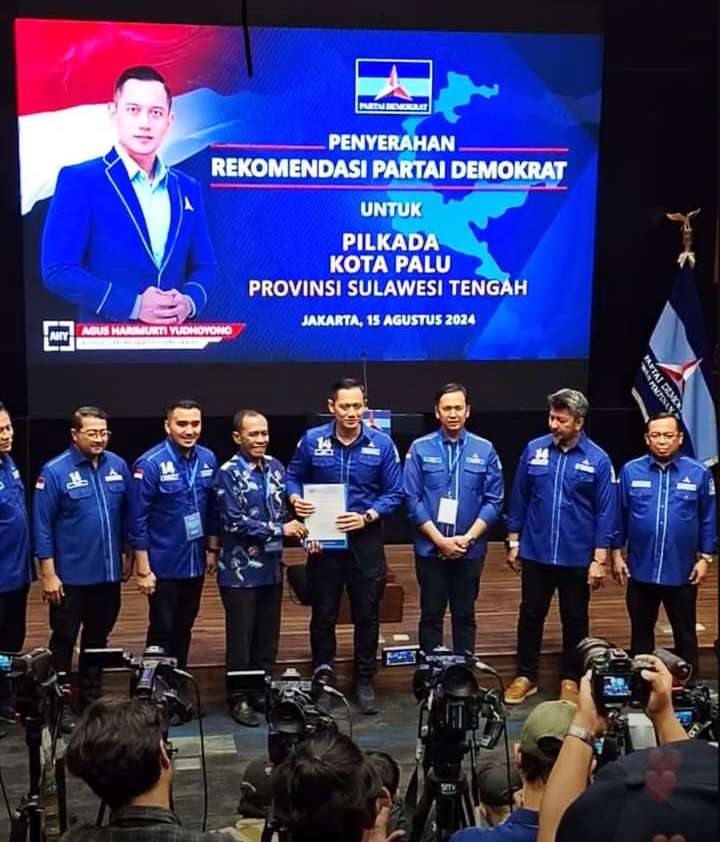 JAKARTA – Ketua Umum Partai Demokrat, Agus Harimurti Yudhoyono (AHY) menyerahkan rekomendasi B1 KWK kepada Bakal Calon Wali Kota Palu, Hidayat M.Si, Kamis (15/8/2024).