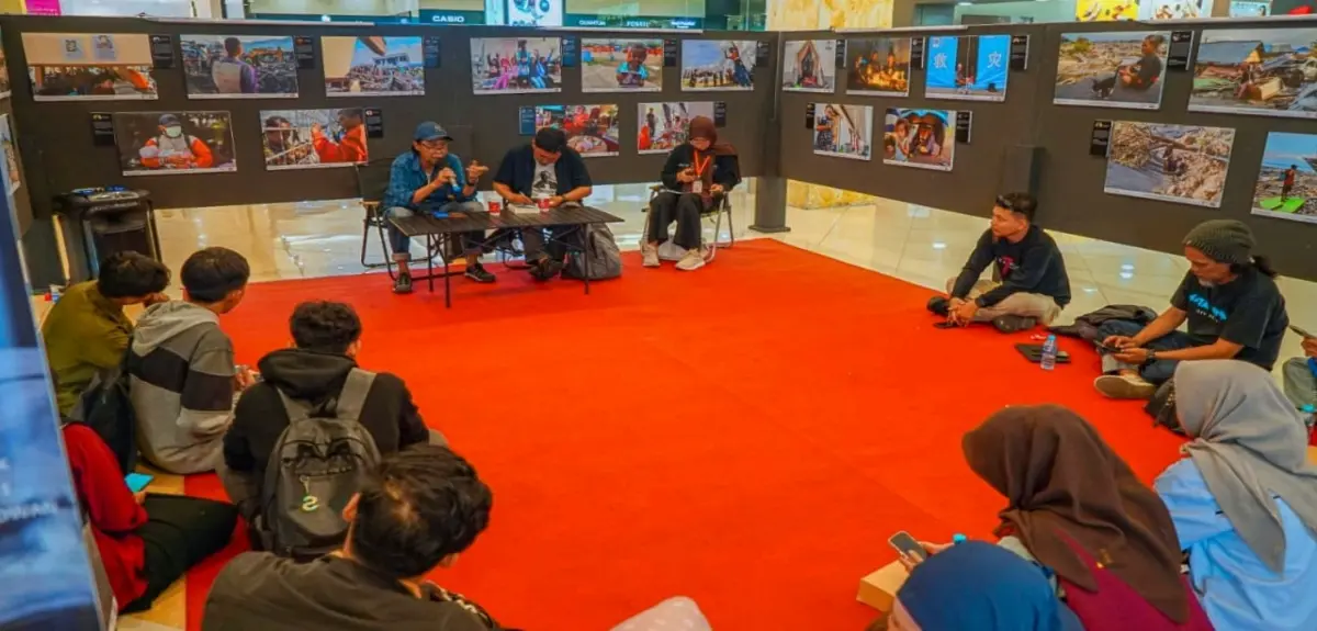 PALU – Pewarta Foto Indonesia (PFI) Palu mengadakan diskusi jurnalistik bertema kebencanaan dan etika liputan di sela pameran foto jurnalistik Asa di Atas Patahan di Palu Grand Mall (PGM), Senin (15/9/2025).