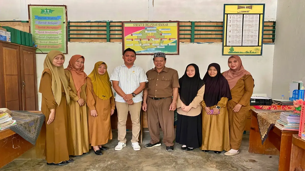 Wakil Ketua Komisi I DPRD Morowali Utara Arman Purnama Marunduh bersama Kepala Sekolah dan Guru MI Al-Khairaat Tompira dalam kunjungan pada Rabu (10/9/2025). (Foto: Pusaran.id)