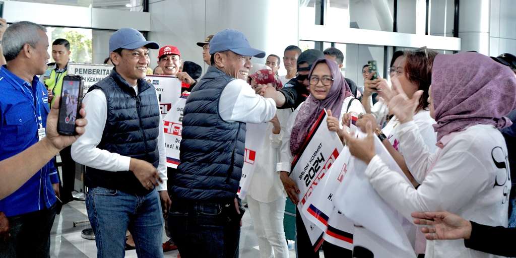 PALU – Kepulangan bakal calon Wali Kota dan Wakil Wali Kota Palu, Dr Hidayat MSi dan H Andi Nur B Lamakarate (HANDAL) dari Jakarta usai menerima B1 dukungan Partai Demokrat dan PDI Perjuangan disambut antusias para pendukungnya di Bandara Mutiara Sis Aljufri Kota Palu, Minggu (18/8/2024) pagi.