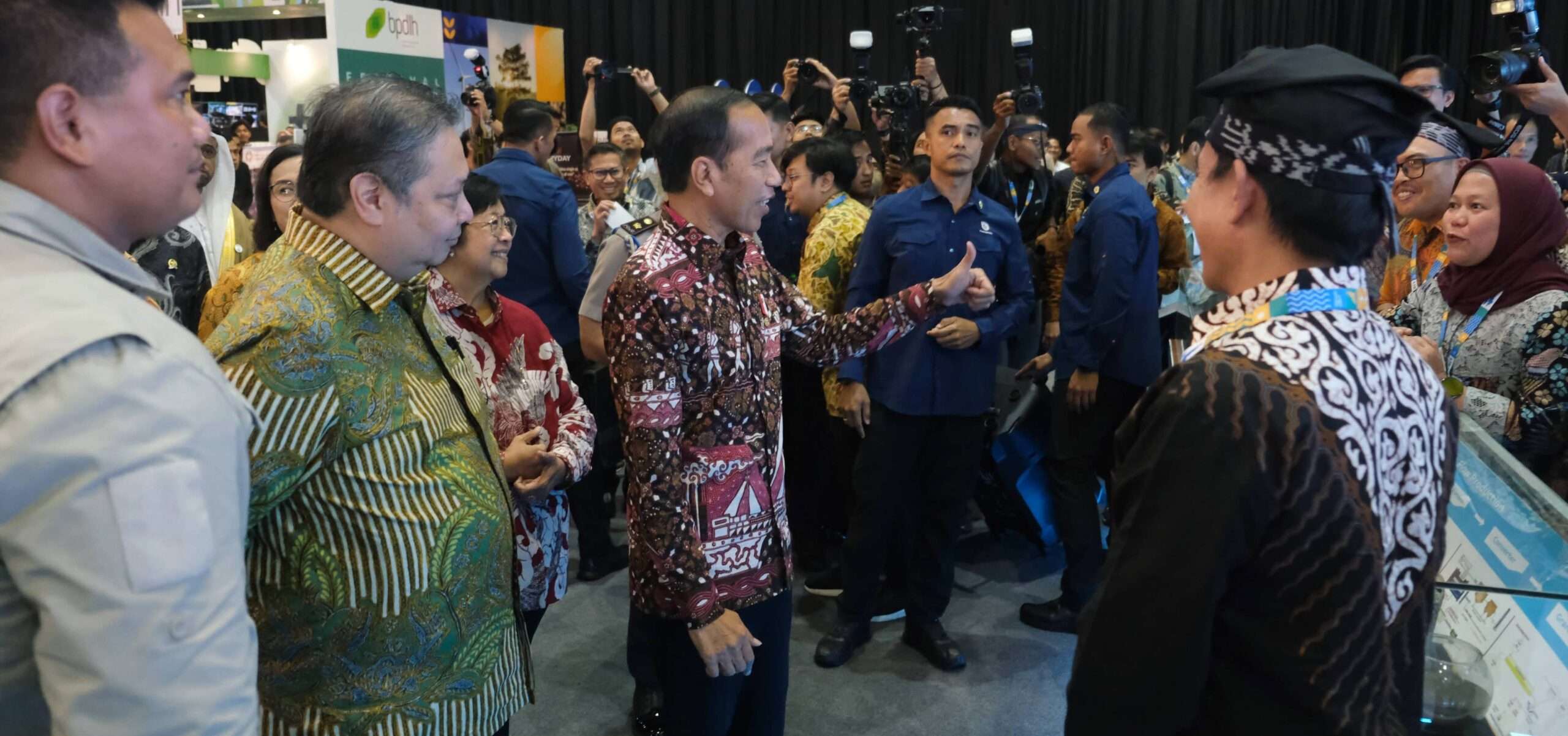 Presiden Jokowi memberikan jempol kepada tim PT Vale Indonesia dalam Festival Lingkungan, Inovasi, dan Kearifan Energi (LIKE) 2 di Jakarta, Jumat (9/8/2024). (Foto: PT Vale Indonesia)